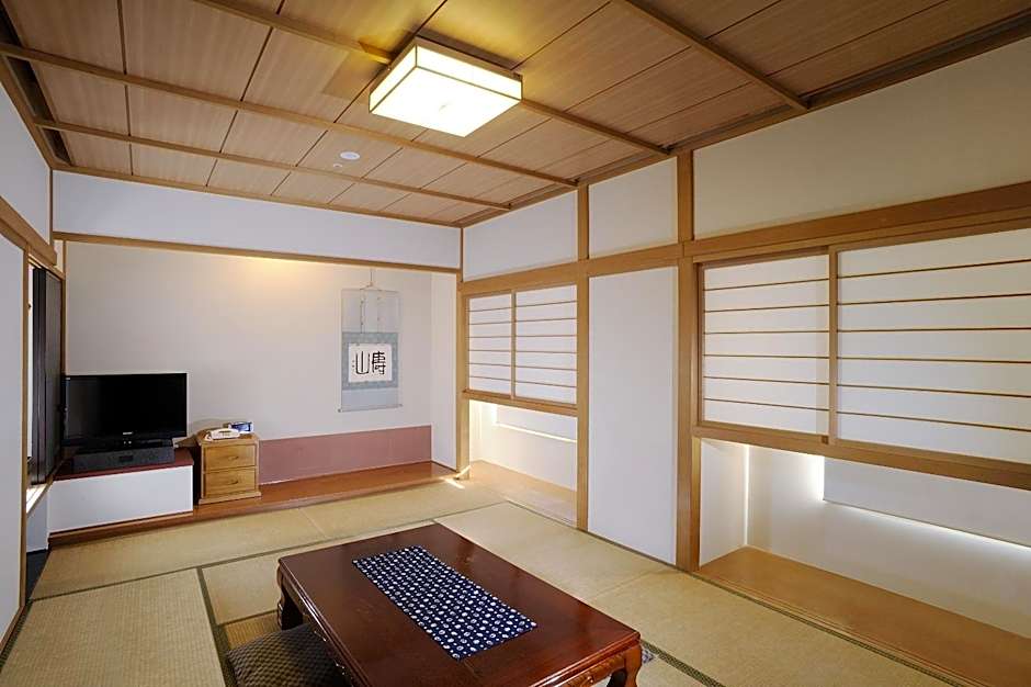 Features tatami (woven-straw) flooring and traditional futon bedding.